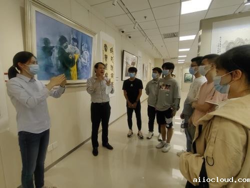 本次主题画展由省直机关工委组织,以“颂党恩、歌盛世,展强国之风采,明爱国爱党之志”为创作主旨,通过多形式的作品呈现,反映了伟大的时代精神,讴歌了建党百年取得的辉煌成就,是一次精品多、品味高的高规格展览。在优秀作品前,汤校长结合专长,从艺术创作的构图、色彩,以及笔法、墨法的技能运用角度,给同学们详细讲解了他本人作品的创作过程,鼓励同学们要持之以恒、坚持不懈的开展专业学习。